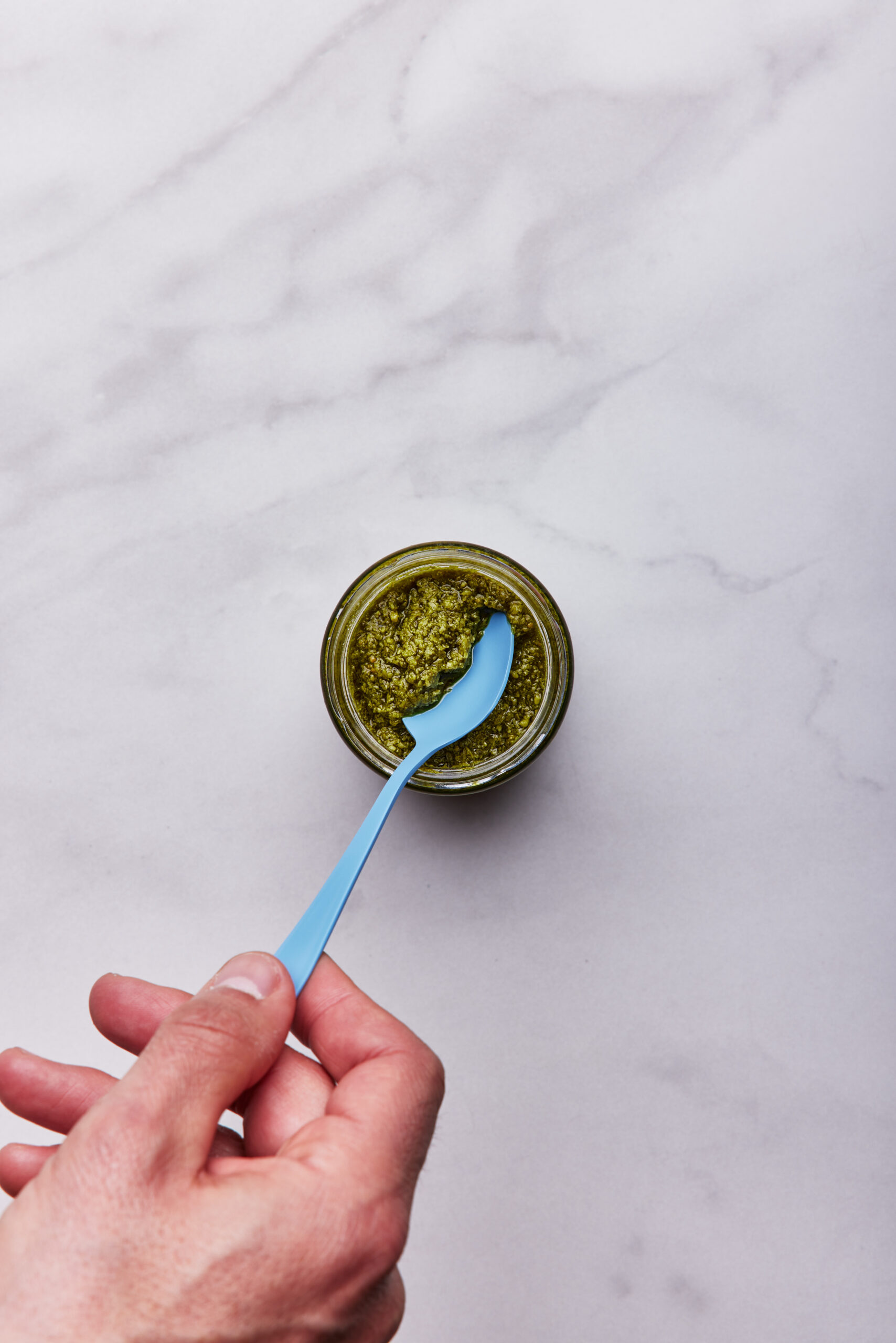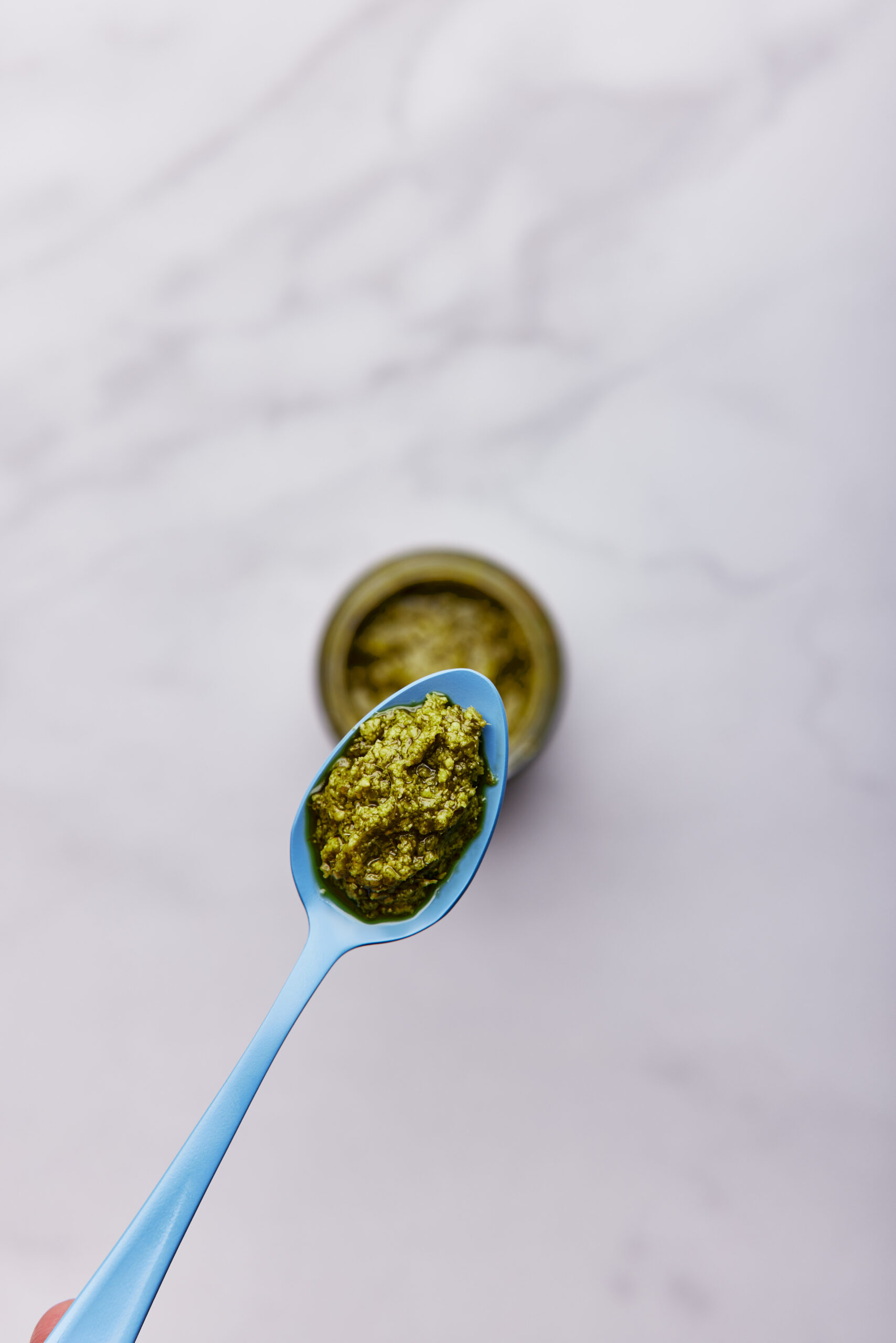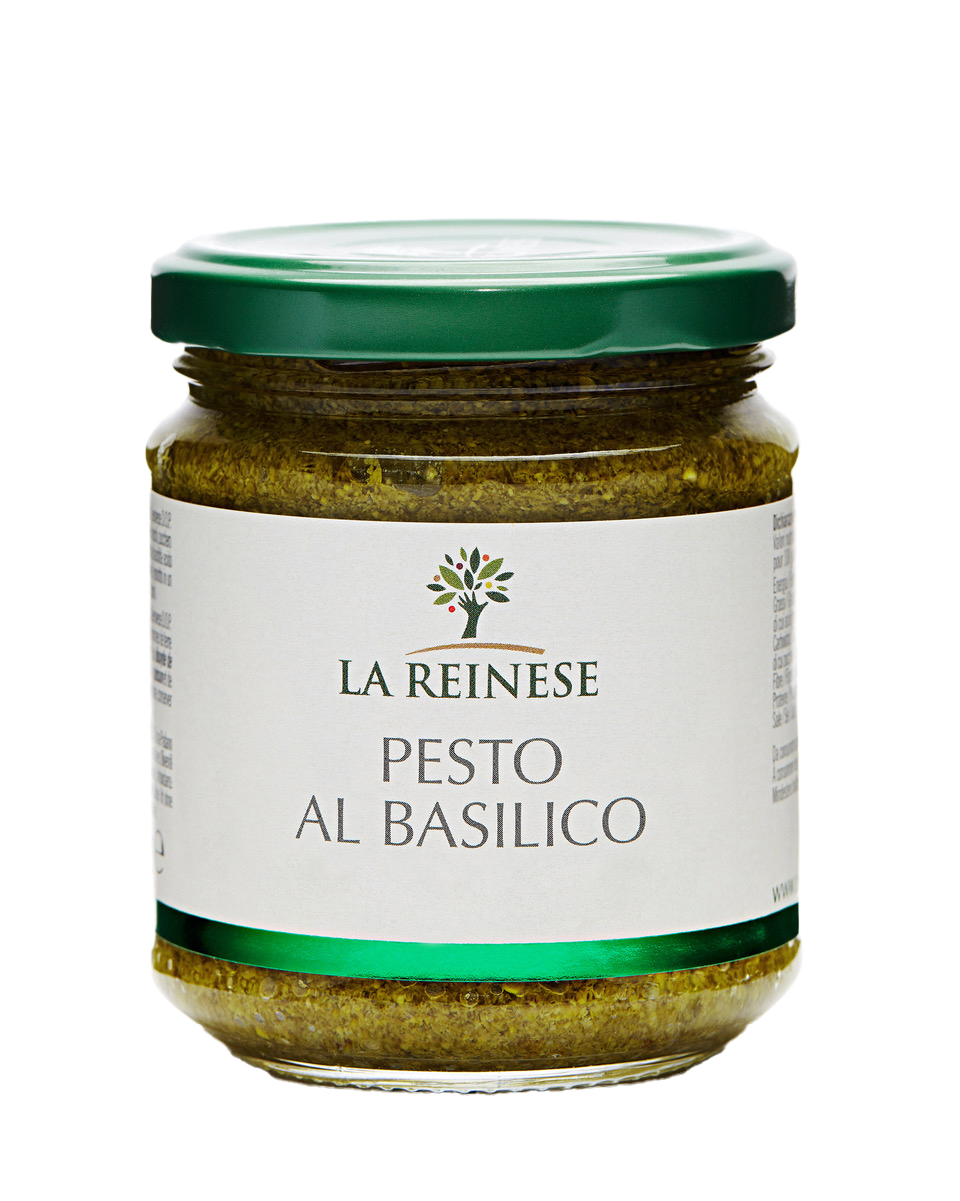 Ingredienti: Olio di semi di girasole 43%, basilico 33,5%, formaggio Grana Padano DOP 7% (latte, sale, caglio, conservante: lisozima da uovo), anacardi, patate in fiocchi, zucchero, olio extra vergine di oliva 1%, sale, aroma naturale, pinoli, aglio (contiene anidride solforosa); correttore di acidità: acido lattico; antiossidante: acido L-Ascorbico. Può contenere tracce di pesce, sedano e soia.