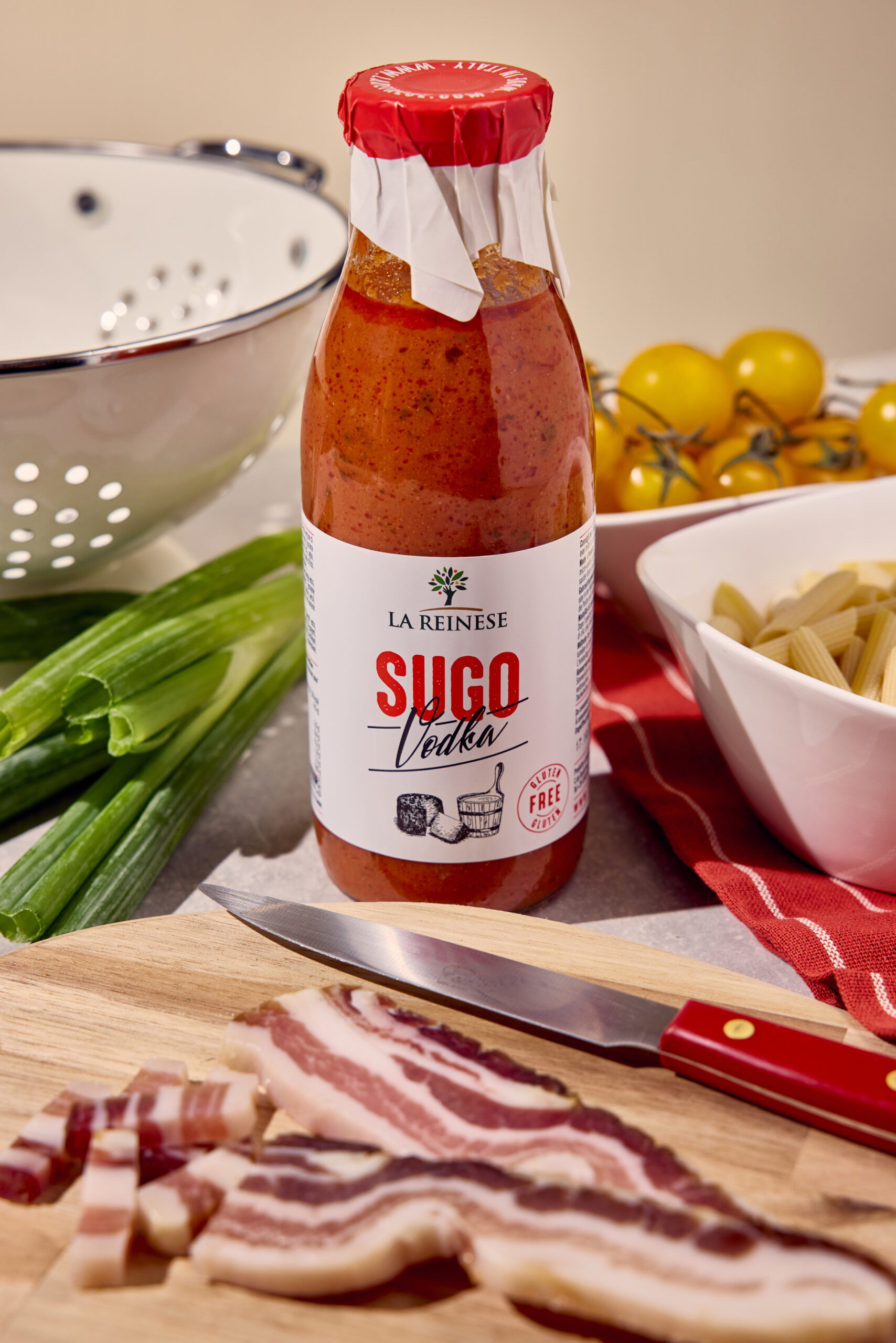 Ingredienti: Polpa di pomodoro 61%, passata di pomodoro 16%, olio extra vergine di oliva, panna liquida, cipolla, formaggio Grana Padano DOP (latte, sale, caglio, conservante: lisozima da uovo), sale, zucchero, formaggio Pecorino Romano DOP (latte, sale, caglio), Vodka 0,5%, aglio, basilico, prezzemolo, pepe bianco, origano, peperoncino piccante; correttori di acidità: acido citrico, acido lattico. Può contenere tracce di pesce, sedano, frutta a guscio e soia.